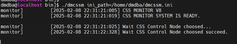 ./dmcssm ini_path=/home/dmdba/dmcssm.ini