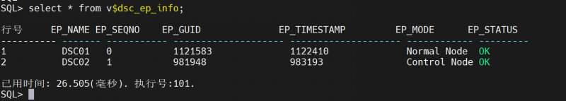 select * from v$dsc_ep_info;