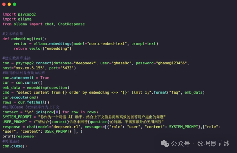 近期GBase数据库公众号发表文章,展示了利用GBase 8c + DeepSeek来构建本地知识库的案例。其中文本嵌入模型选用的是开源的nomic-embed-text,在处理短文和长文本任务方面有较大的优势;文本生成模型则选用DeepSeek-r1,能够更好的捕捉文本中的语义信息,为文本生成带来更出色的效果;而数据库则用于在本地存储私域知识库,实现快速向量化检索的同时提供更加稳定、安全的数据防护。