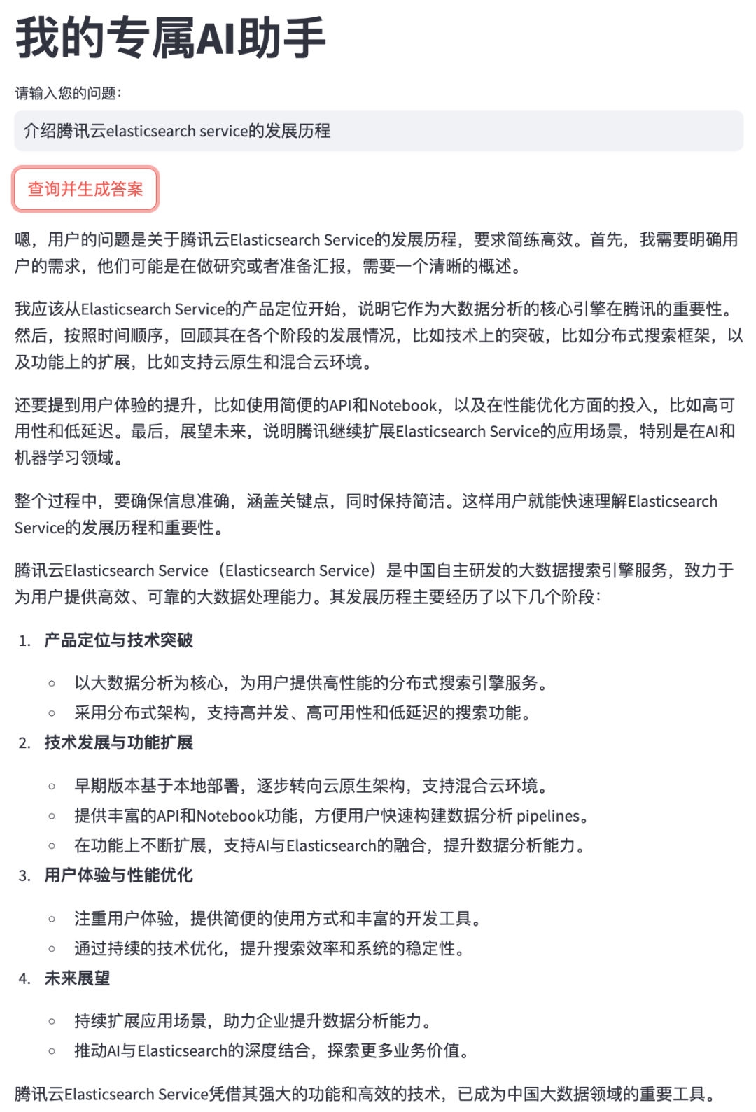 我们使用“介绍腾讯云elasticsearch service的发展历程”这个问题来对比效果: