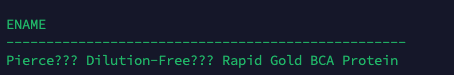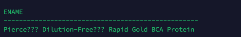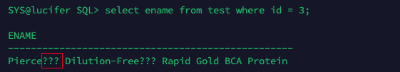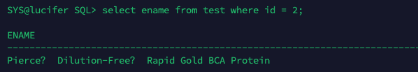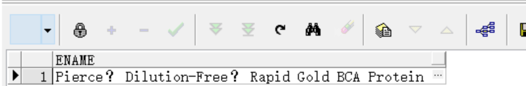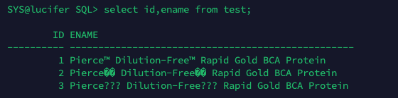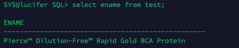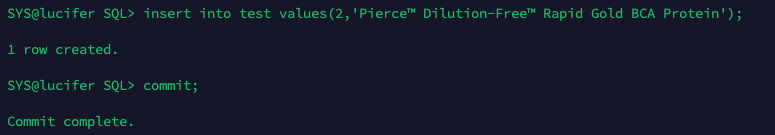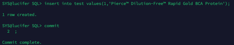 SQL> insert into test values(1,'Pierce™ Dilution-Free™ Rapid Gold BCA Protein');