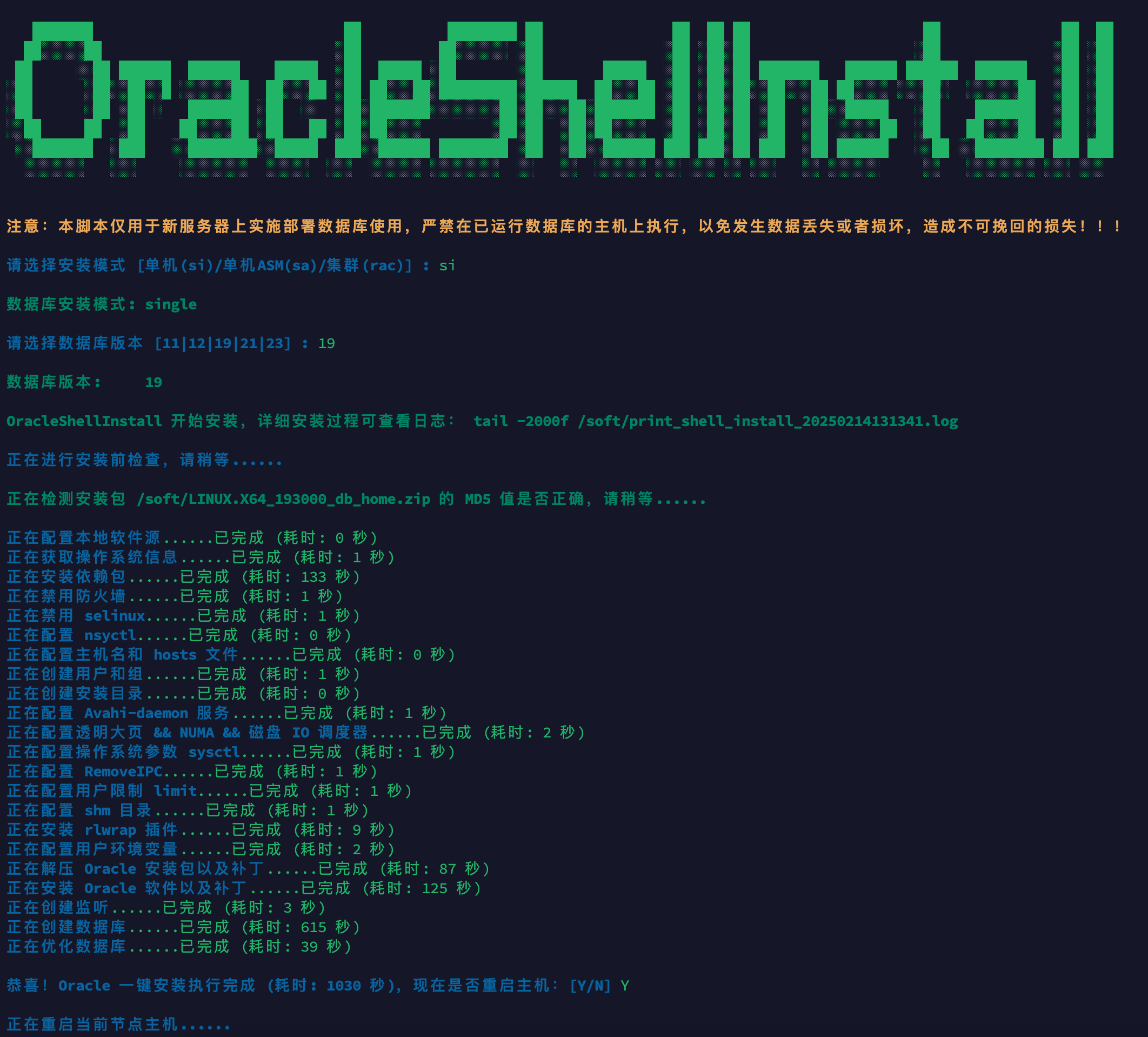 ./OracleShellInstall -lf ens192 `# 主机网卡名称`\