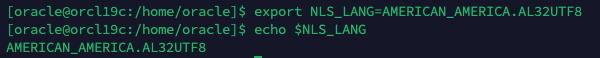 [oracle@orcl19c:/home/oracle]$ export NLS_LANG=AMERICAN_AMERICA.AL32UTF8