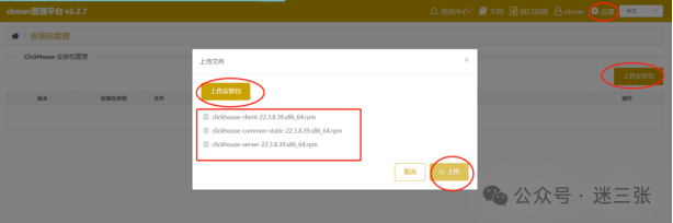上传ClickHouse 数据库安装包【在我上述提到的下载离线包地址中提前下载】