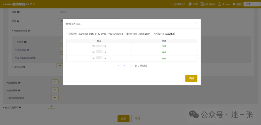 到此安装完了ckman~~~~~下面我们通过ckman安装ClickHouse集群!