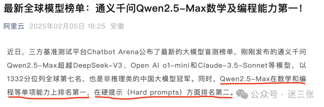 Chatbot Arena 官方评价称:阿里巴巴的 Qwen2.5-Max 在多个领域表现强劲,特别是专业技术向的(编程、数学、硬提示等)。