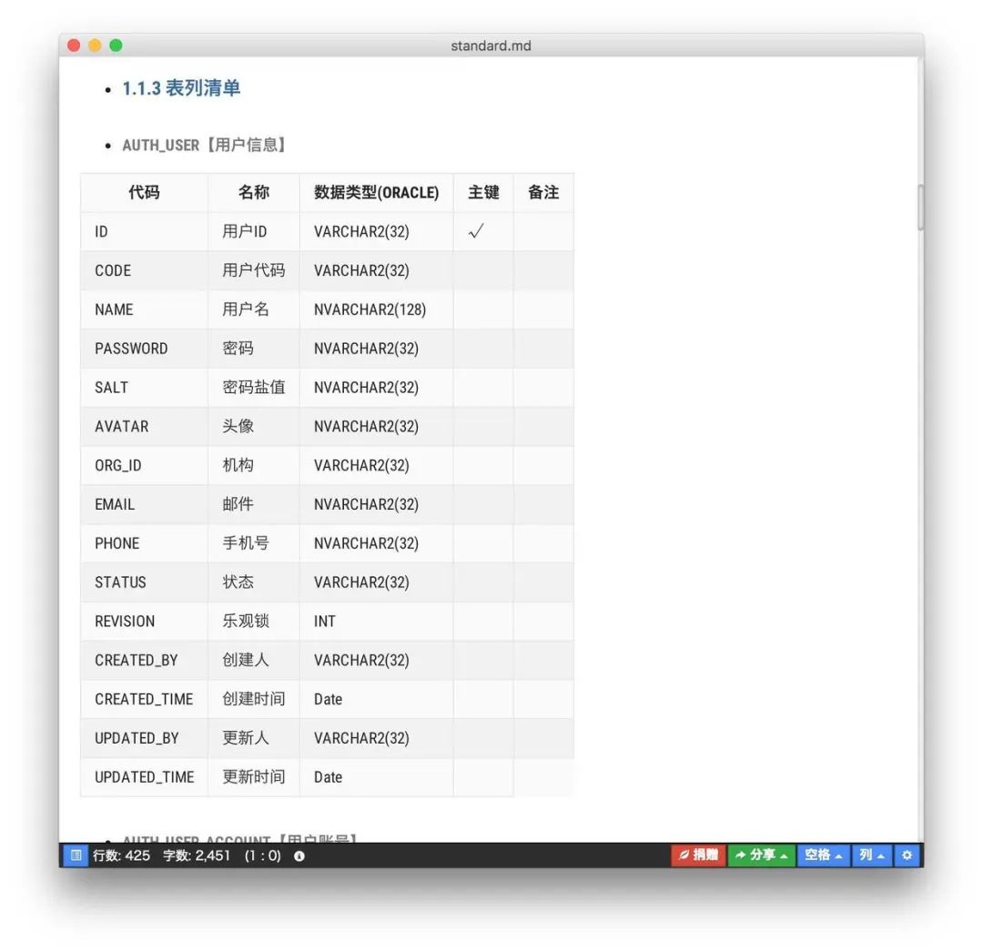 一键自动生成数据表结构文档,方便客户交付。