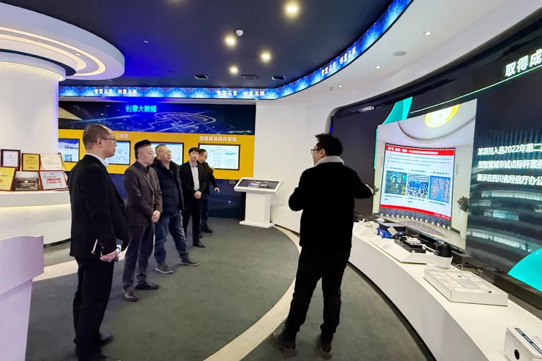 当天,奥看科技总裁庞明一行首先参观了创意信息展厅,深入了解创意信息在数字化转型服务方面的技术能力、产品体系和落地成果,并重点调研公司包括云边一体化智能平台、AI智能一体机在内的人工智能体系能力。