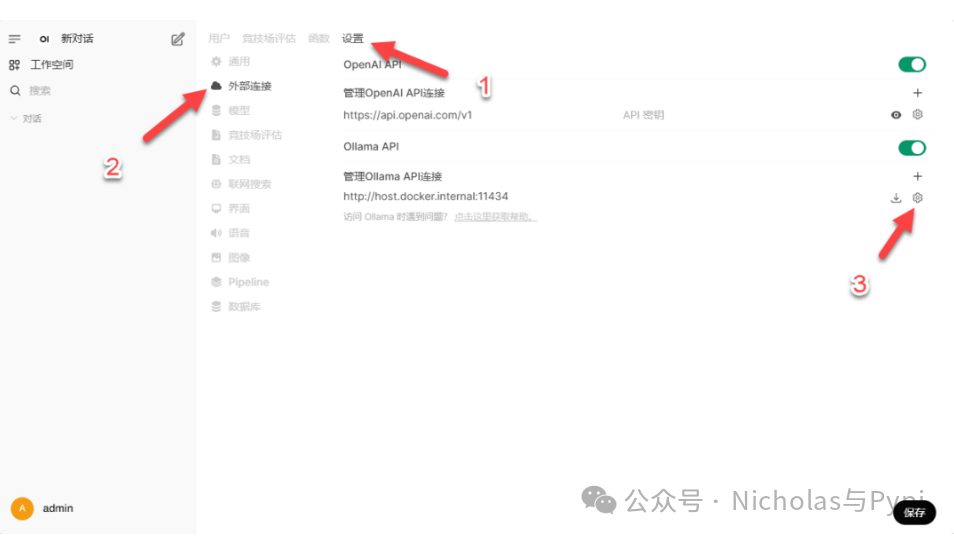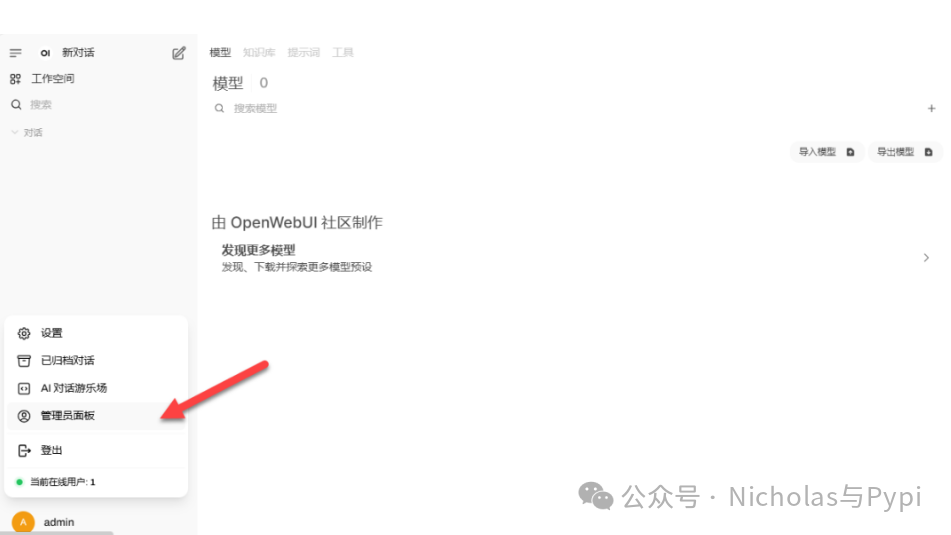 点击管理员面板配置模型