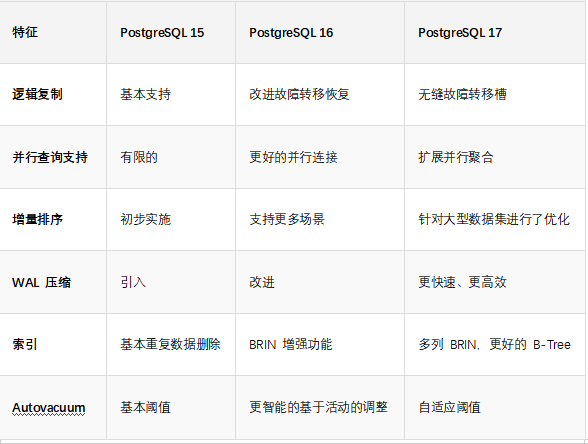 虽然 PostgreSQL 15 和 16 引入了关键功能,但 PostgreSQL 17 中的改进使其成为希望提高效率和可扩展性的企业的不二之选。