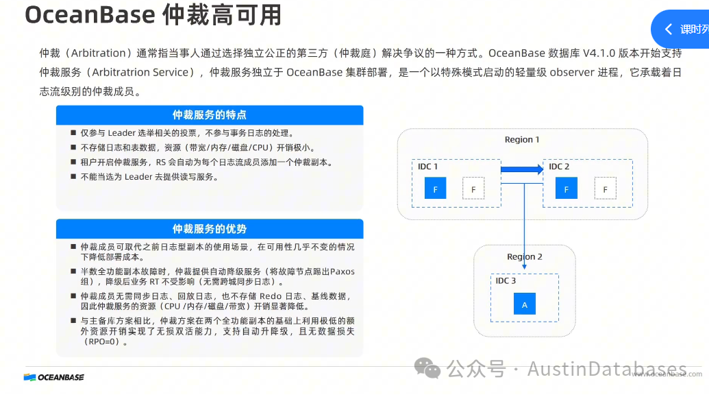 OceanBase V4 版本引入了仲裁服务,作为一种新的高可用机制。