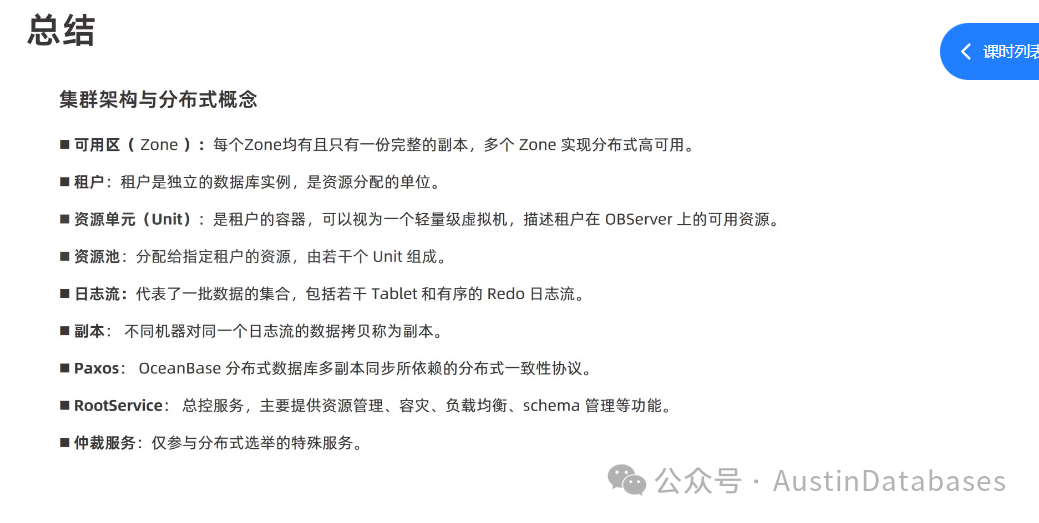 此篇为OceanBase 视频学习总结的第二篇:这篇主要是围绕OBCA 4.0课程中的第二章中的三个小结进行学习