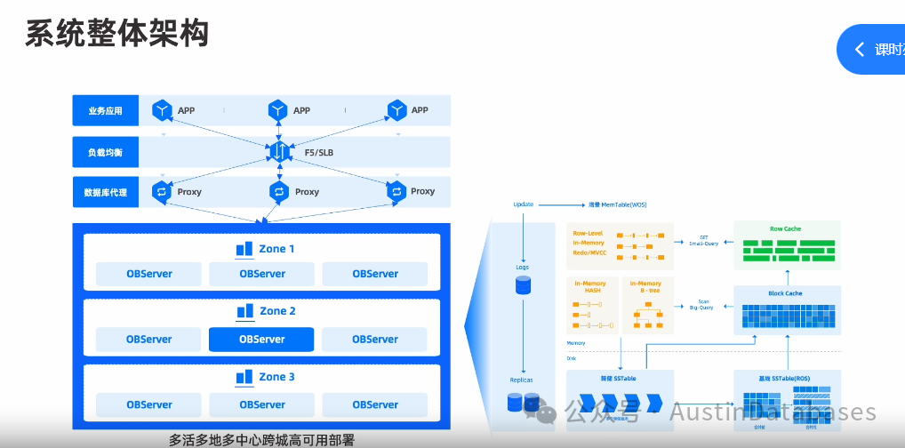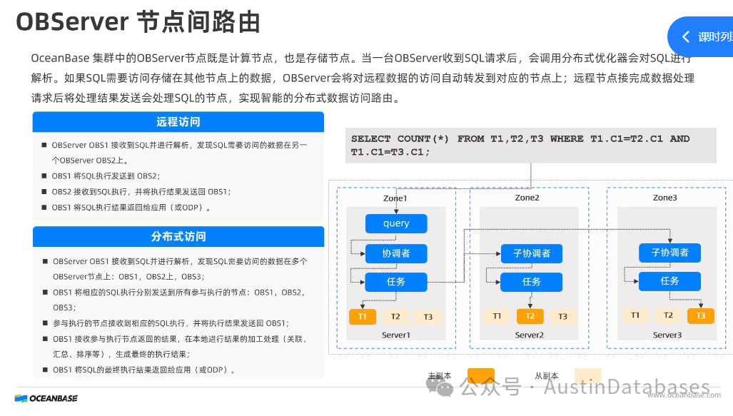 从 OceanBase 内部架构来看,它是一个多节点、多副本并且读写分离的架构。