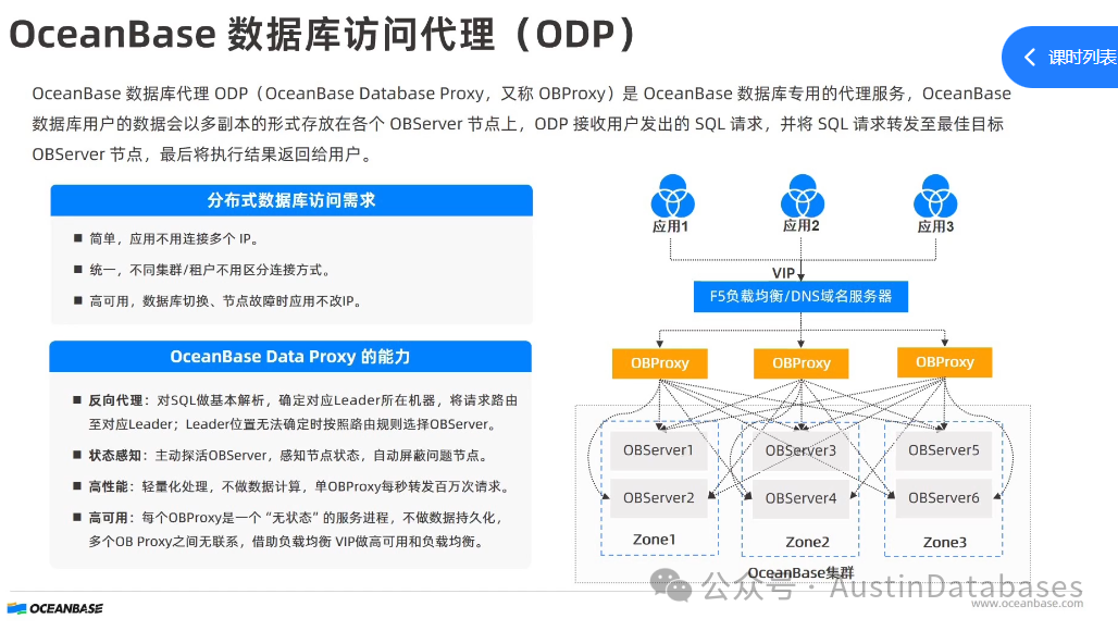 OceanBase 集群的基本概念、路由与负载均衡以及高可用部署架构总结如下: 集群基本概念