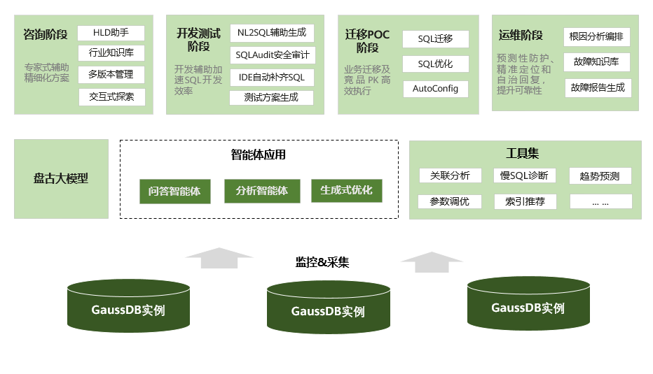 综上,GaussDB在AI大模型技术的加持下,通过整合内外部知识、优化运维工具与增强数据库管理能力,构建了一个高效、智能、全面的数据库运维体系,为数据库运维的未来开辟了新的道路。