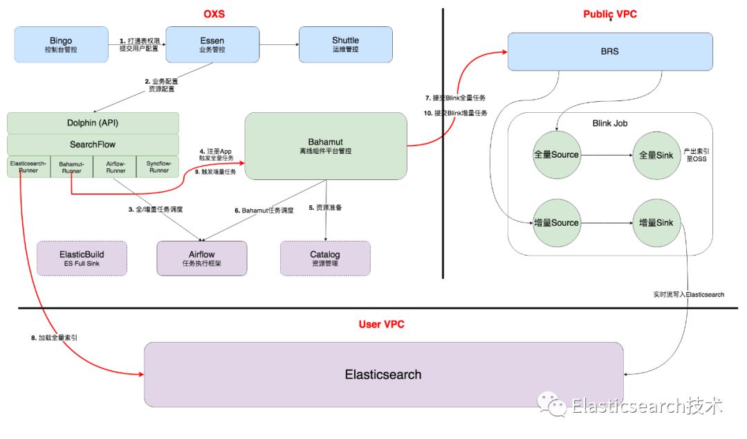 ElasticBuild主要解决离线全量的性能问题,做到在离线分离。它是基于实时计算引擎Blink的离线索引构建,我们针对Elasticsearch内核进行了深入优化,使得全量性能相比于在线得到了极大的提升。