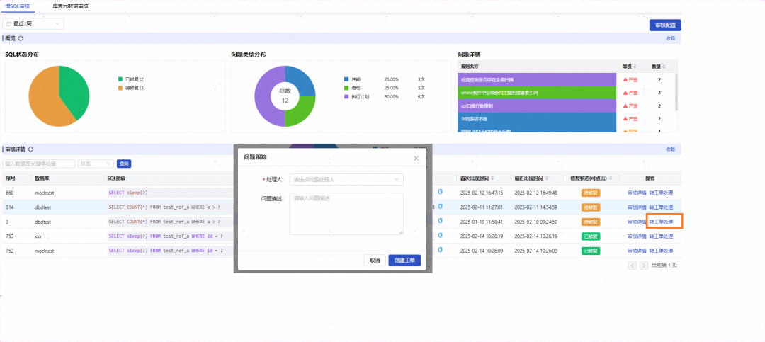 工单驱动,责任到人:运维人员将问题SQL生成工单,明确指定处理人员,责任清晰,避免问题遗漏,确保每个问题都能得到及时处理。