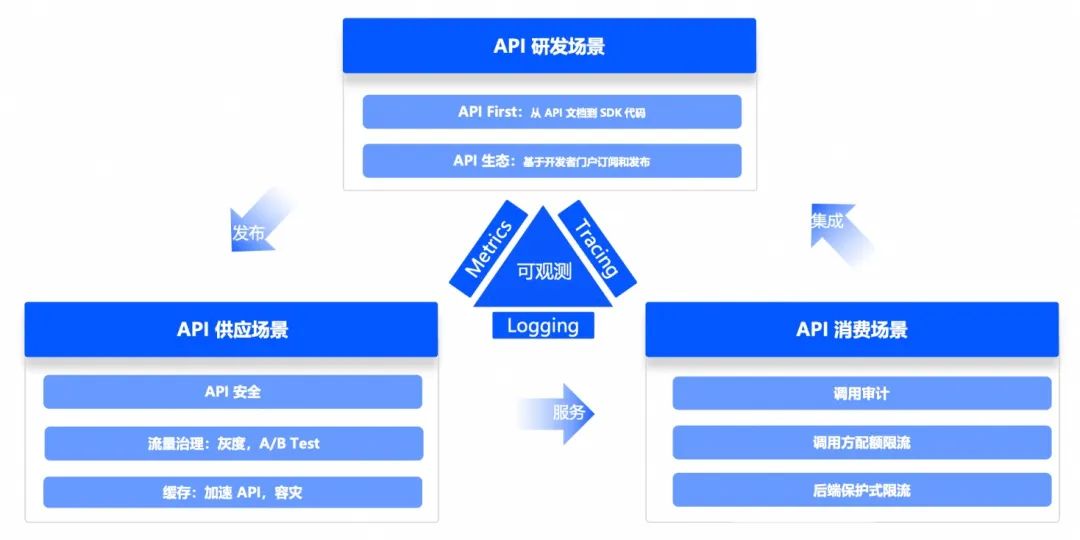 在大模型场景下,大模型通过 API 对外提供服务,因此研发场景、供应场景、消费场景都出现了更加丰富的诉求。