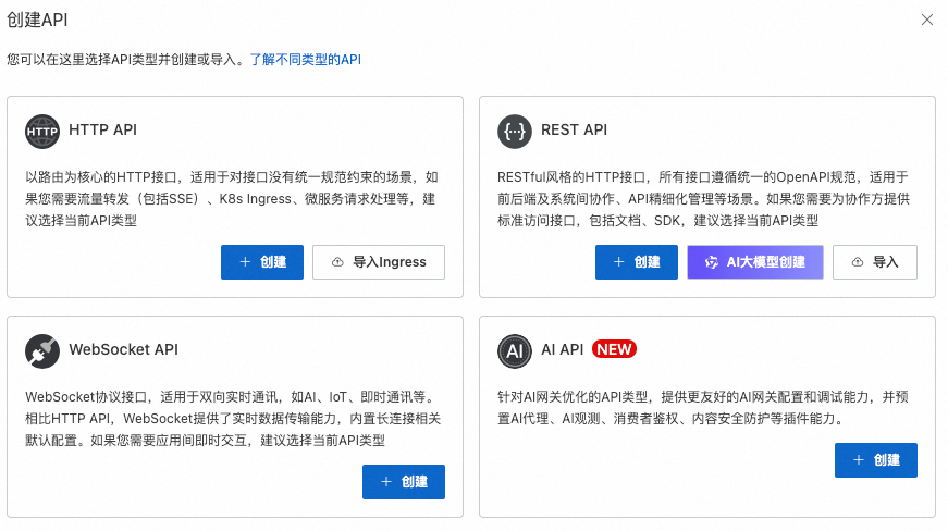 我们认为 AI 网关并不是独立于 API 网关的新形态,本质也是一种 API 网关,区别在于针对 AI 场景的新需求专门做了扩展,它既是 API 网关的继承,也是 API 网关的演进。因此我们从 API 视角,对 AI 网关的能力做了分类,便于形成概念的共识。