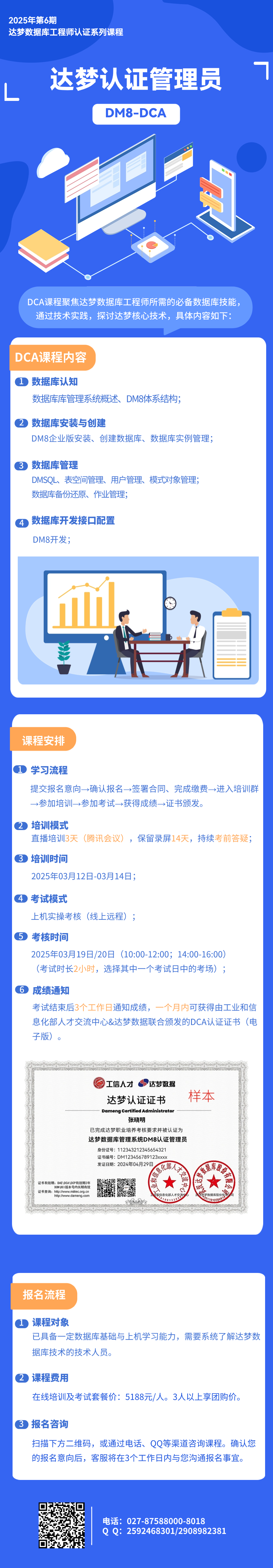 开班通知 | 2025年第6期达梦认证管理员DCA在线课程(2025年3月12日开班)