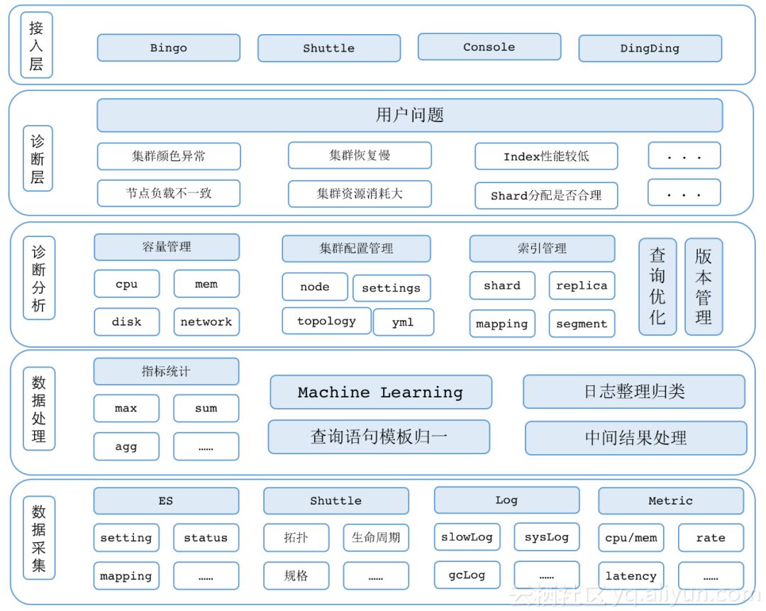 索引管理,索引的mapping,settings(包括索引切分,冷热索引,无效字段)等一切与索引操作相关的诊断;