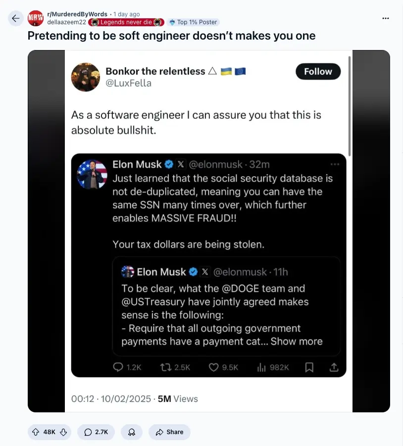 马斯克关于 SSN 数据库去重的评论在开发者群体中引发了巨大的争论,许多软件工程师对他的言论不屑一顾。让我们看看 OpenAI 和 DeepSeek 是如何设计这个 SSN 数据库 schema 的。