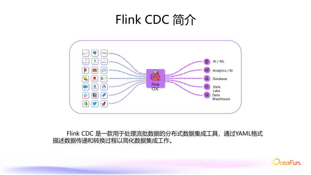 基于 Flink CDC 的现代数据栈 CDC YAML 核心功能 CDC YAML 典型应用场景 Demo & 未来展望
