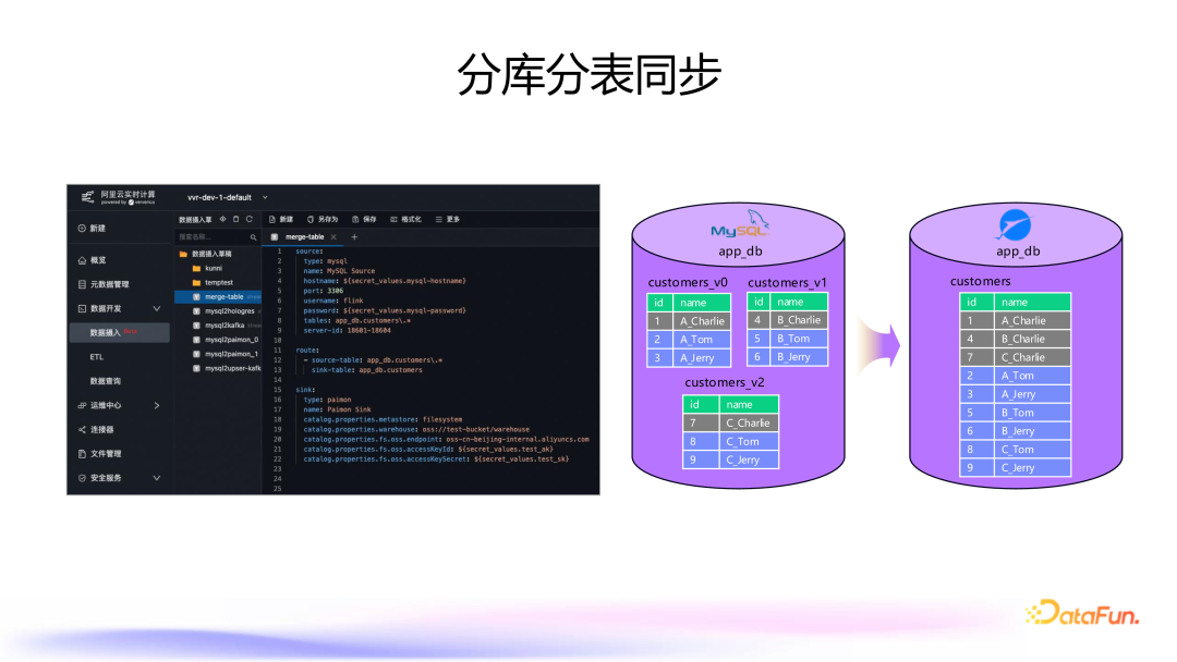 例如,将 app_db 中的多个版本的 customer 表合并到下游数据库中的一张 customer 表中。