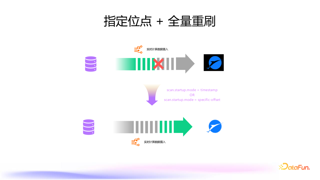 支持指定位点间隔全量重刷操作,解决数据同步过程中因上游 MySQL 版本不兼容或 binlog 配置问题导致的数据解析错误。 用户可以定义具体的 offset 或 timestamp,跳过错误数据,重新进行数据同步。