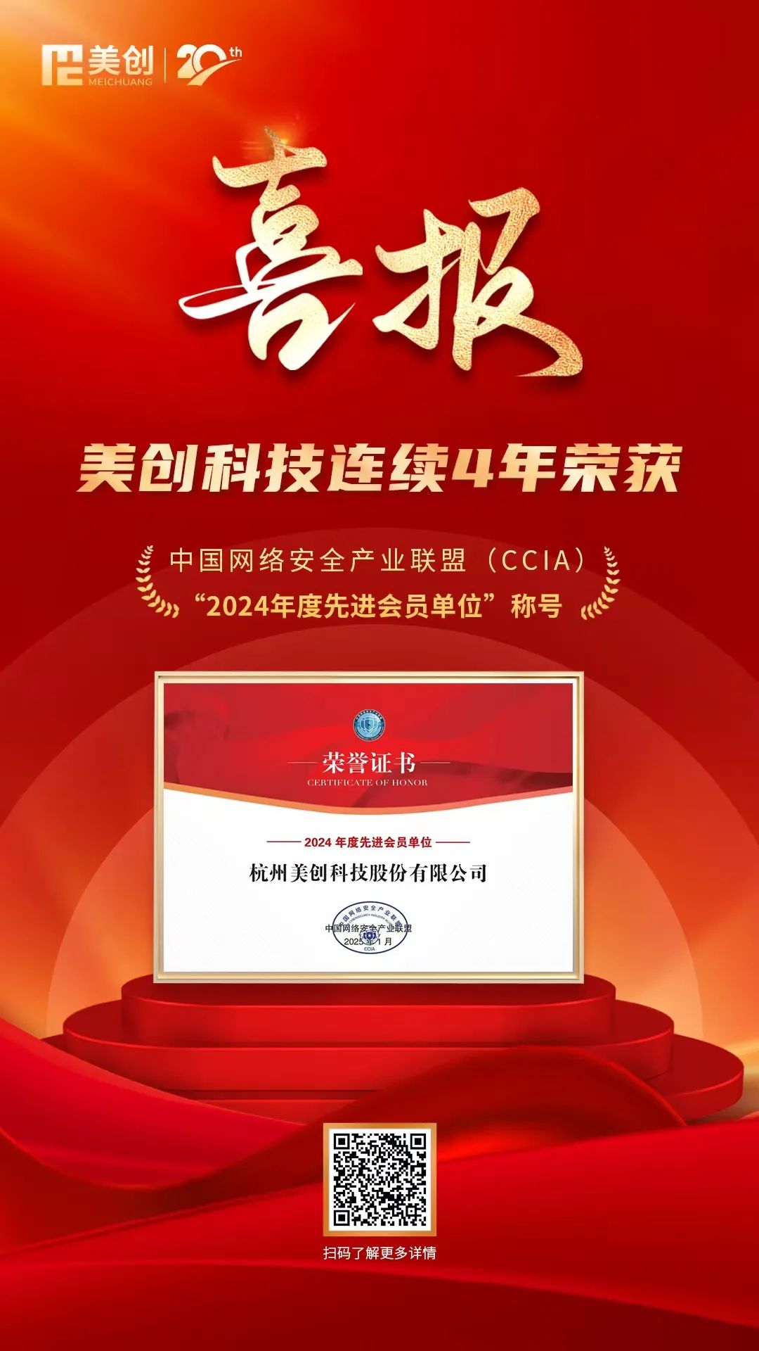 会上正式表彰 CCIA 2024年度“先进会员单位”,杭州美创科技股份有限公司(以下简称“美创科技”)凭借在数据安全领域的突出贡献和行业影响力,连续第四年获此荣誉。