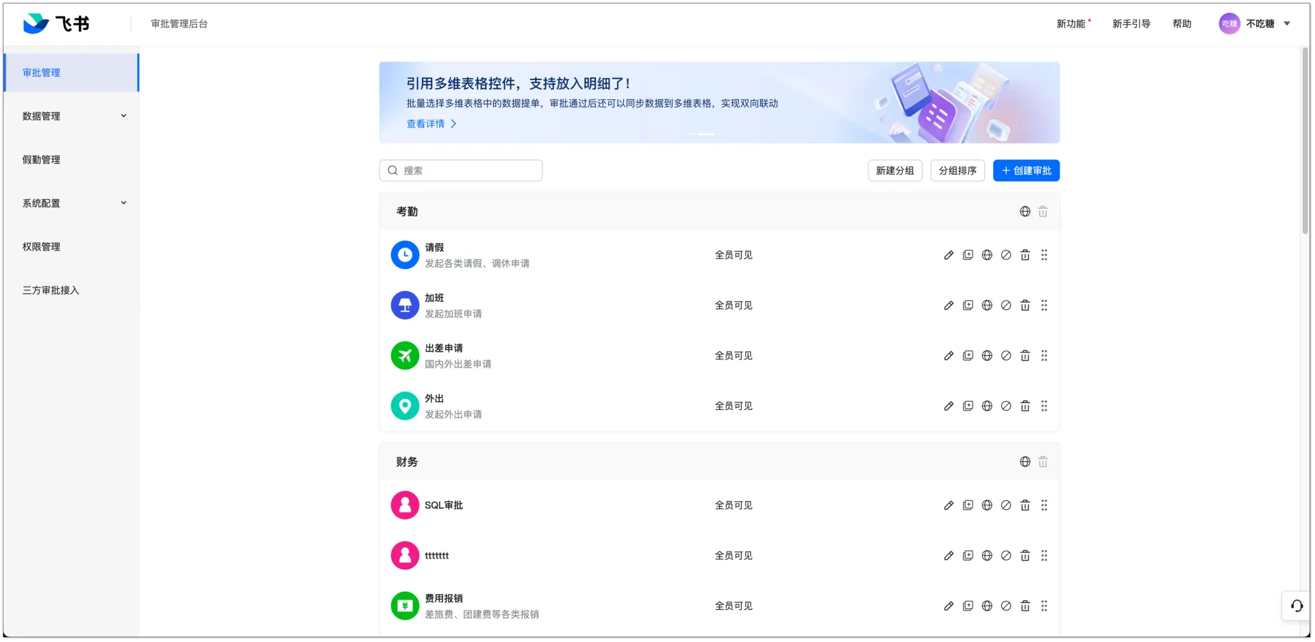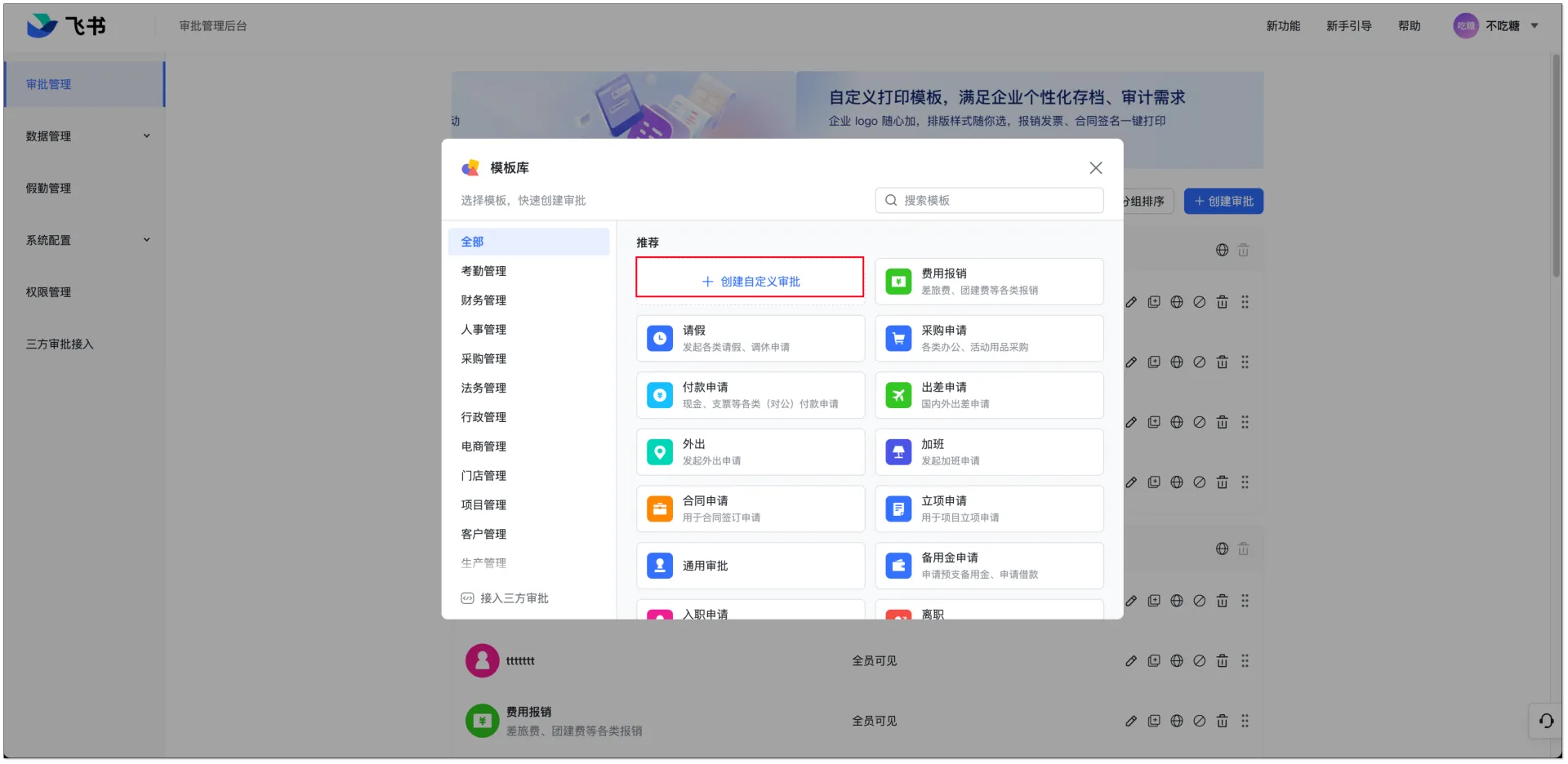 进入 飞书审批管理后台,点击 审批管理 > 创建审批。
