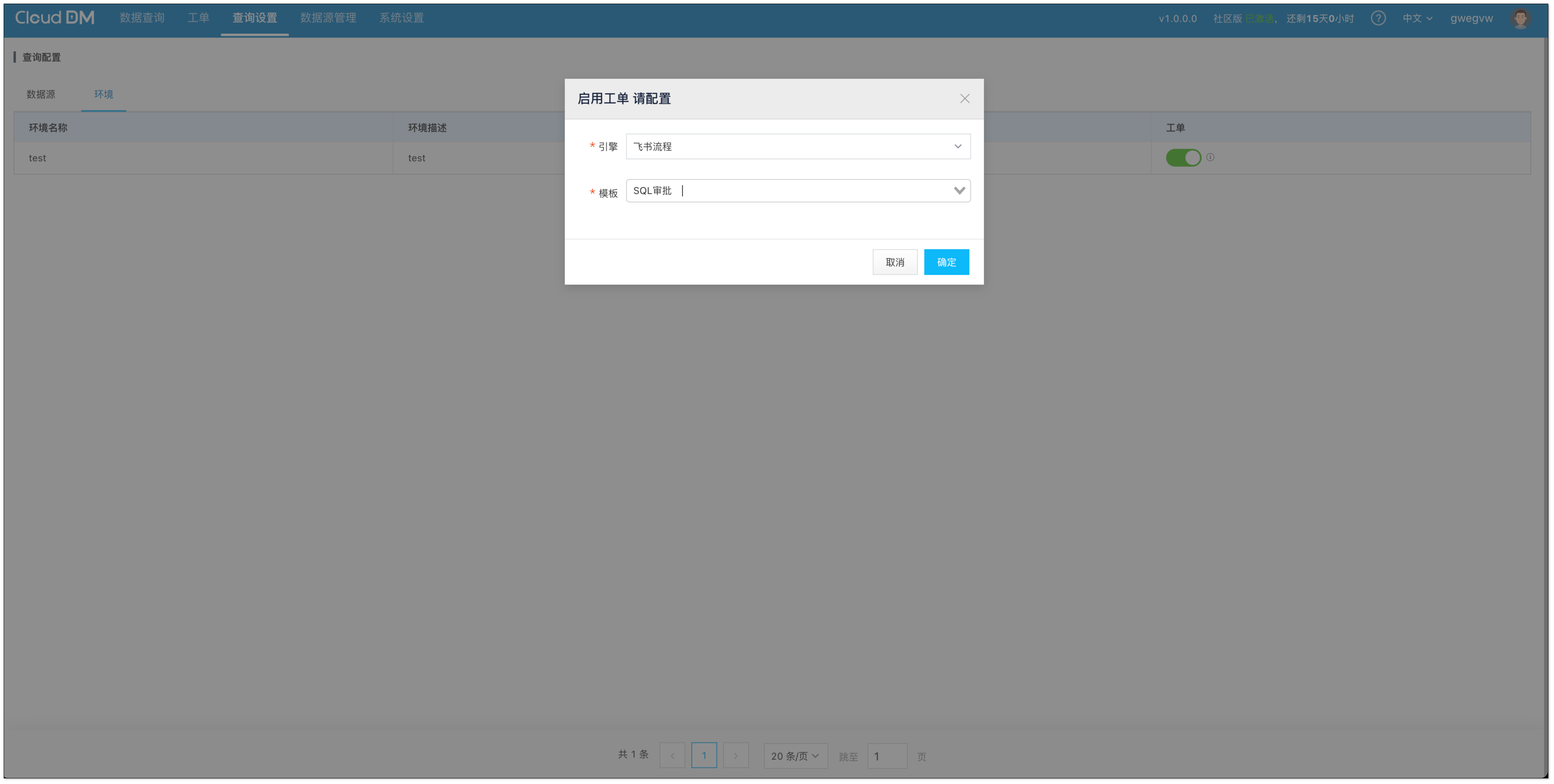 在 CloudDM Team 平台上方导航栏,点击 查询设置。
