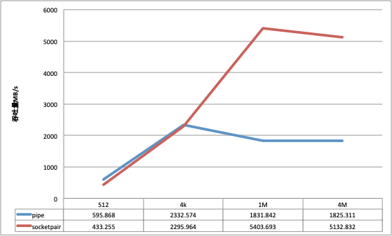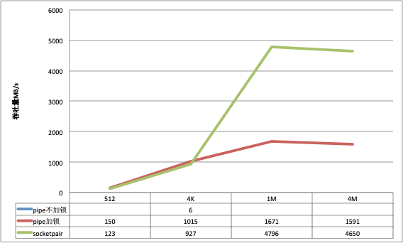 socketpair同单进程一样, 在小数据包的场景下吞吐量略微逊色于pipe, 但是大数据包的场景下远远优于pipe;