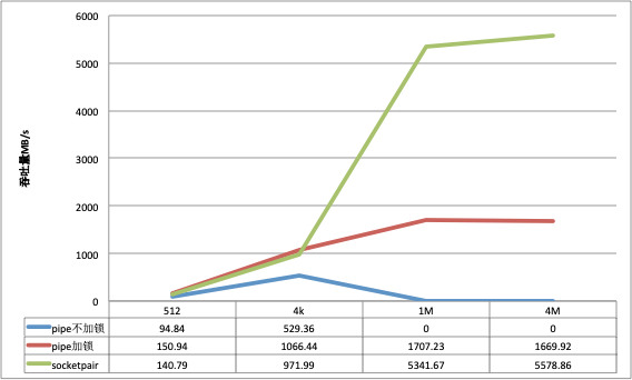 只对比pipe和socketpair两种方式(这两种实现方式十分接近); 另外因为一些偶然的原因, 发现虽然pipe自身是能保证原子性的, 但在并发场景下给pipe加锁之后反而得到了不同的结果, 值得关注;