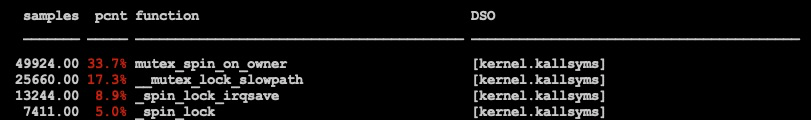 对pipe的问题问题进行进一步探究, perf后可见pipe不加锁时内核的spin lock是性能热点