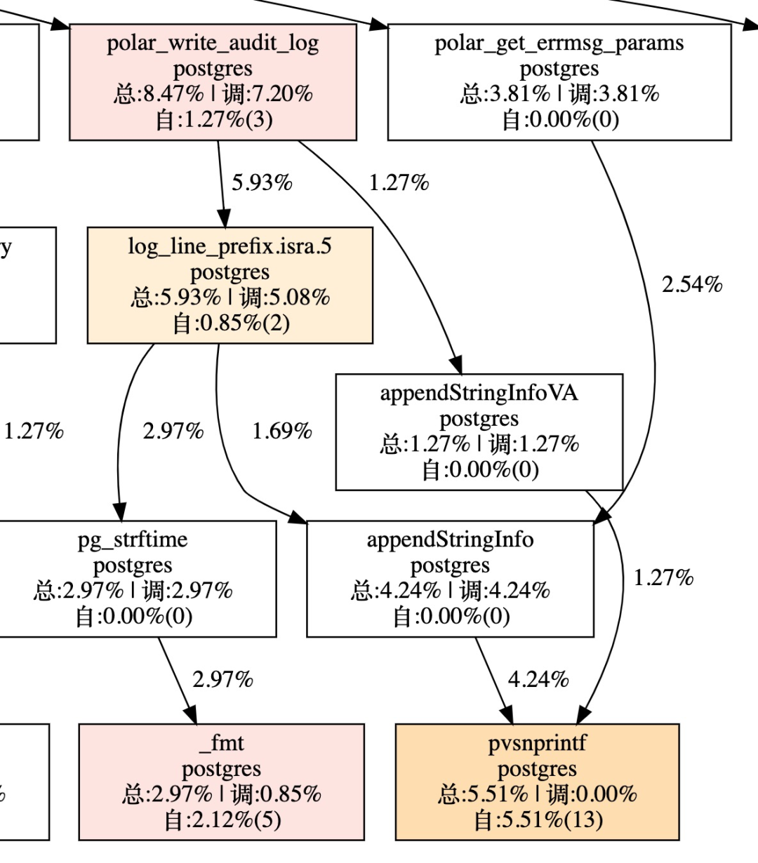 查看扁鹊, 可以看到write_audit_log整个函数中append string消耗还是比较大的, 可见最终瓶颈还是在backend上, 拼字符串操作太重:
