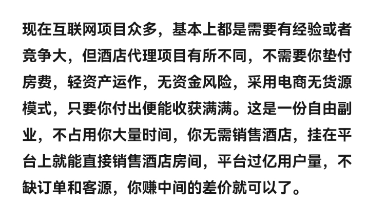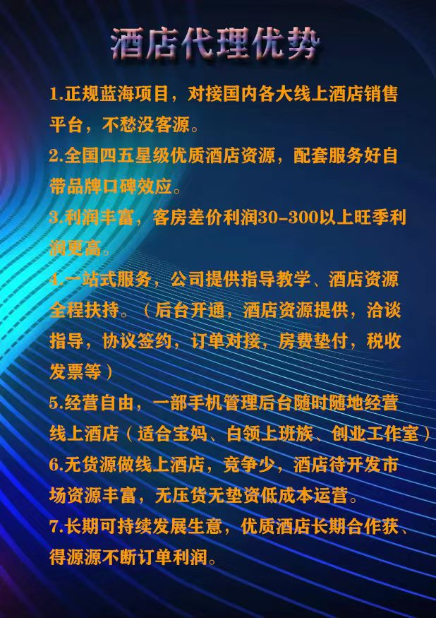 酒店代理,一个新兴的创业项目,正规平台合作。