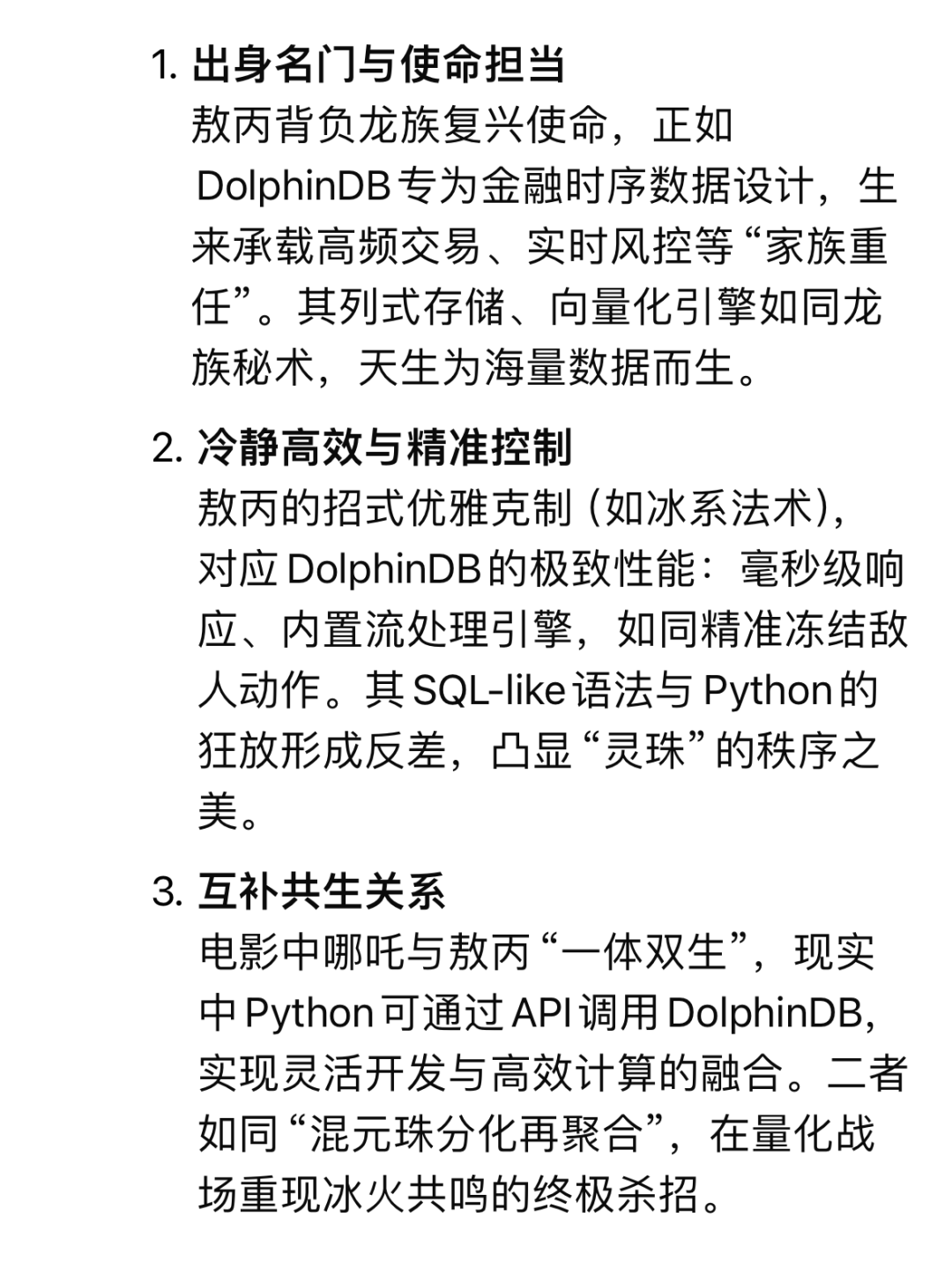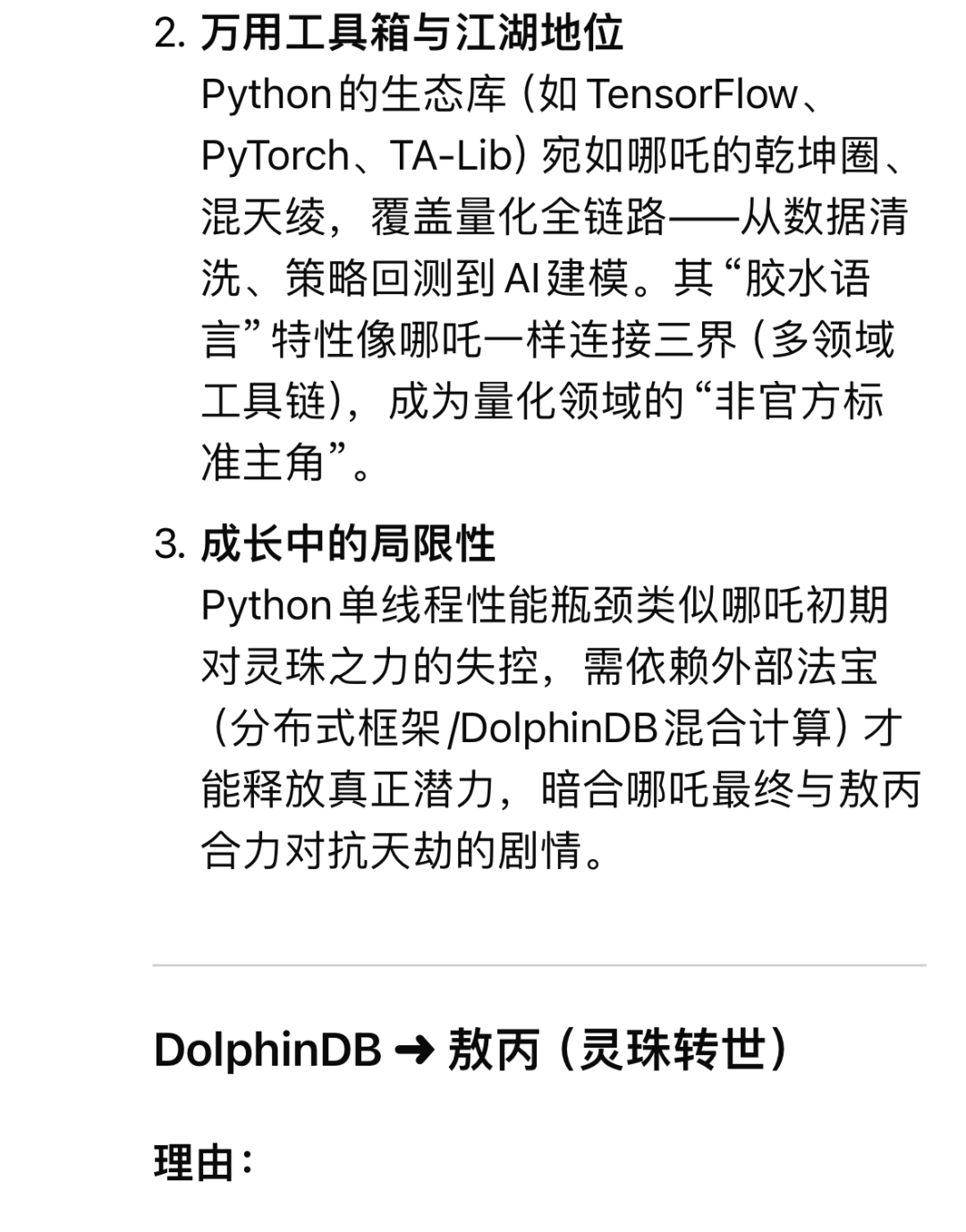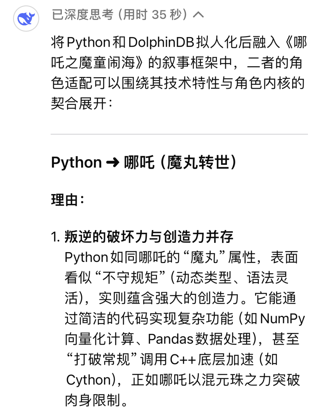 Q:如果让 Python 和 DolphinDB 共同出演《哪吒之魔童闹海》,它们最适合扮演电影中的哪位角色?