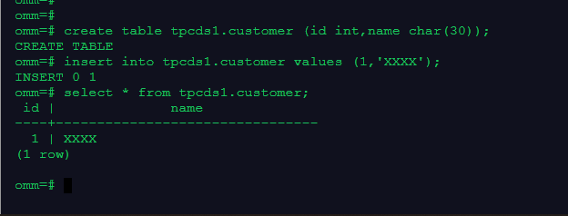 4.在模式tpcds1中建表customer、插入记录和查询记录