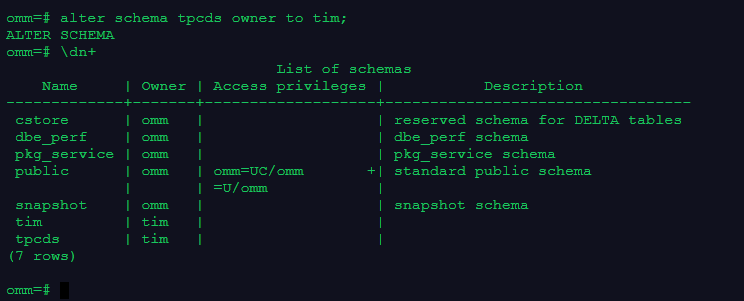 alter schema tpcds owner to tim;