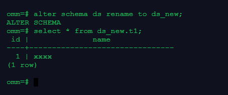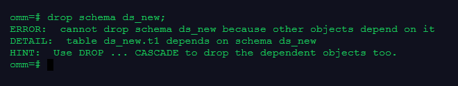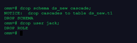 –当schema非空时,如果要删除一个schema及其包含的所有对象,需要使用CASCADE关键字