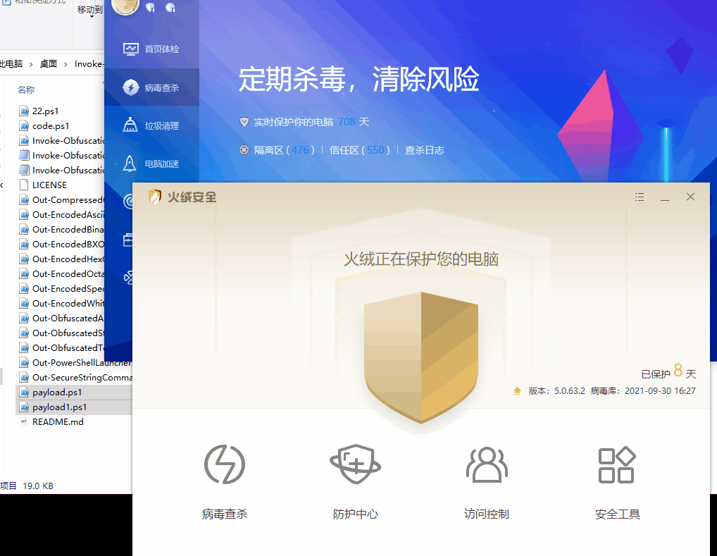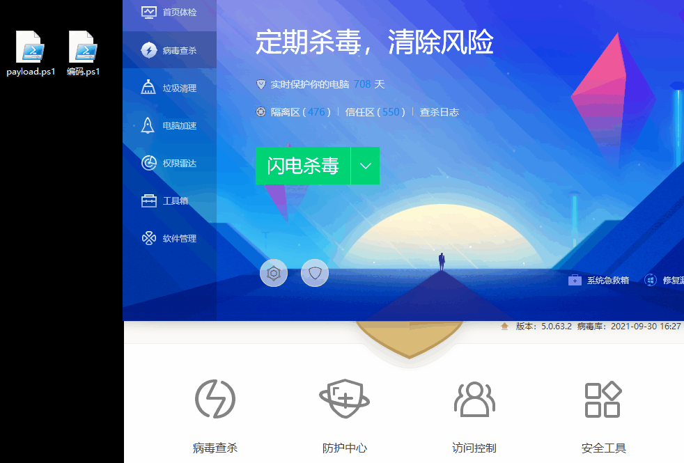 总结:针对Powershell脚本,X60查杀有点让人意外,后面拦截却牛逼哦系统内置的Defender,直接全干,果然不愧是自家的杀毒对自己的东西真了解