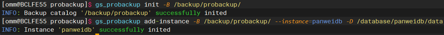 gs_probackup add-instance -B /backup/probackup/ --instance=panweidb -D /database/panweidb/data