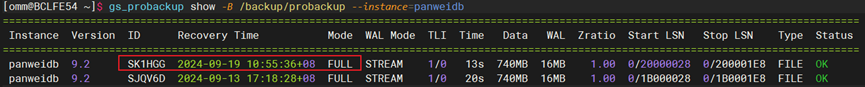 gs_probackup show -B /backup/probackup --instance=panweidb