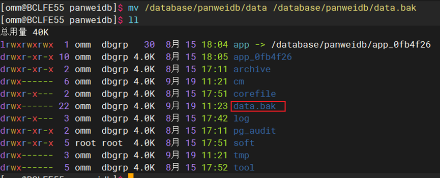 mv /database/panweidb/data/postgresql.conf /database/panweidb/data/postgresql.conf.bak202409191132