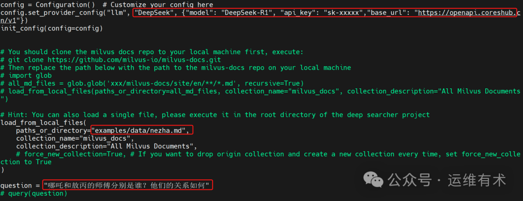 编辑项目 DeepSearcher 目录下的 examples/basic_example.py