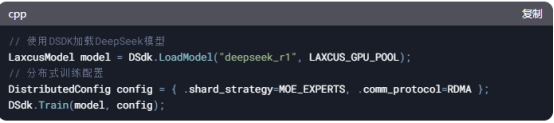 - DSDK(分布式软件开发包):提供标准化的API接口,支持开发者以单机编程模式开发分布式应用,适配DeepSeek的MoE架构动态分片需求。