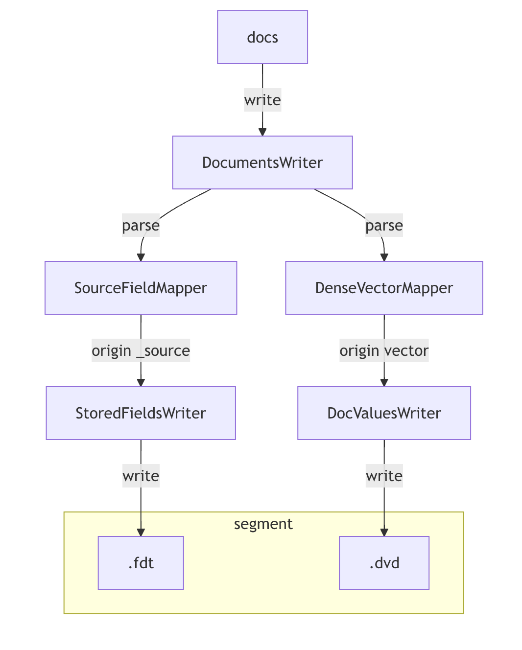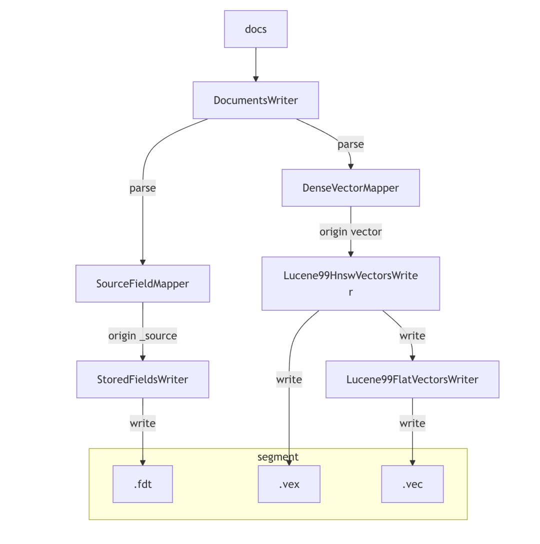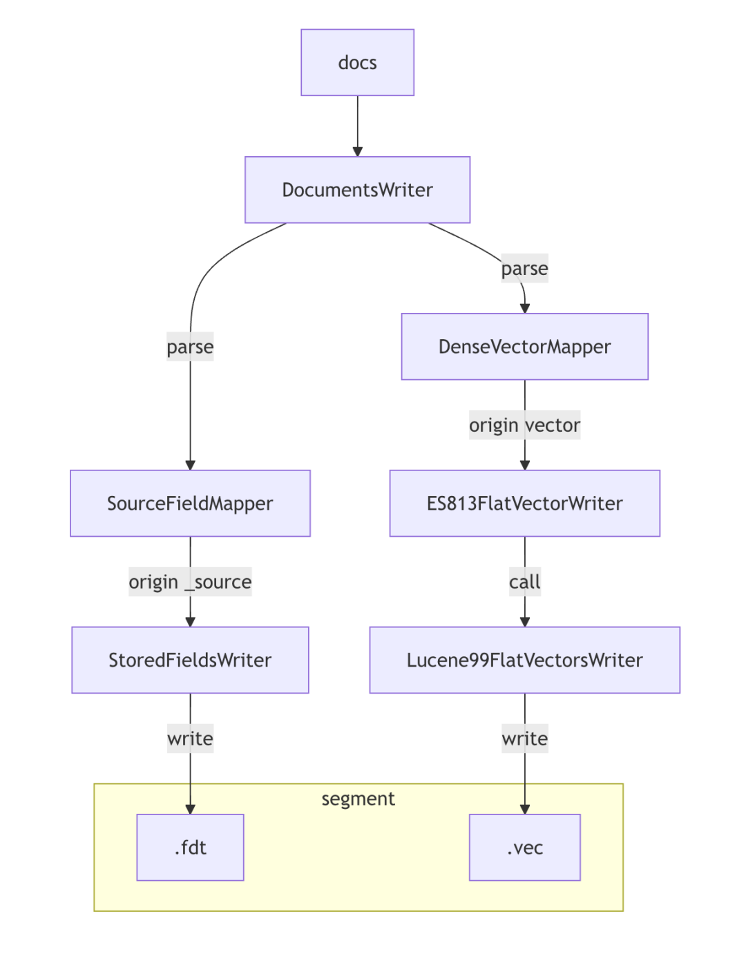 关于 ES 倒排索引等存储构成,网上早已有很多文章进行过解析,不做赘述。我们会重点探究在 ES8 引入向量功能后所发生的变化。本文所引用代码均为 ES 8.16.1 版本。