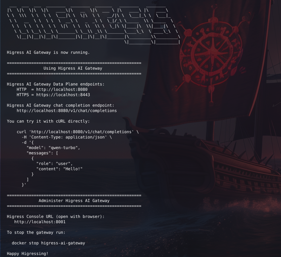 看到以下界面就表示 Higress AI 网关已经成功启动了。