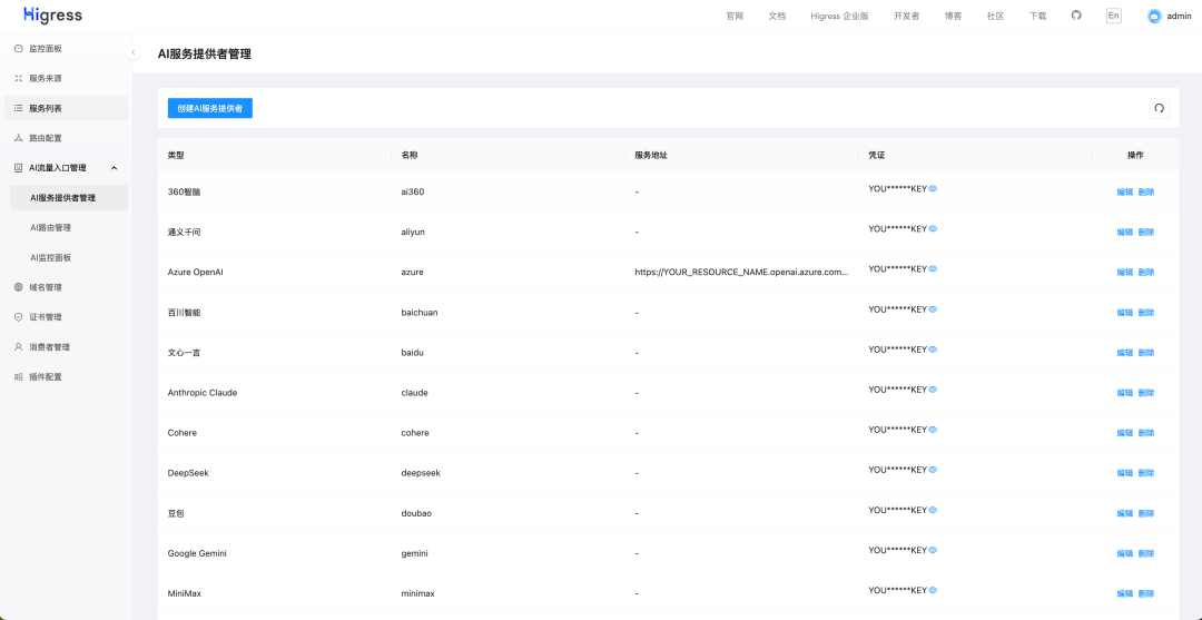 Higress AI 网关已经帮用户预先配置了 AI 路由,可以根据模型名称的前缀来路由到不同的 LLM。